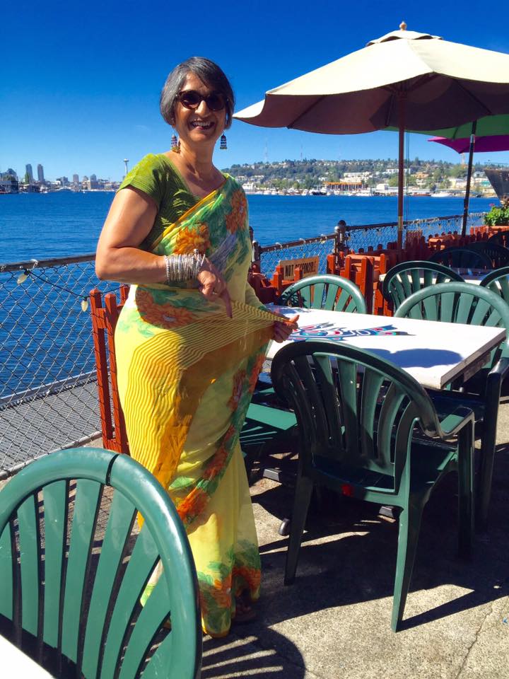 Just a couple of days before I left Bombay for this long sojourn in the U.S. Sharon and Donald came by with this lovely gift for me . To be honest , there and then I had decided this was to be my Birthday Saree and somehow had the “Fall and Beading” done in time to pack it along. Sharon, who has been on my team since she was all of 18 ( almost making me guilty of child labour) who along with her charming pilot husband Donald is bringing up their cutest ever little bundle of joy Theo…been on my mind all day my dears as I have enjoyed draping your lovely gift and gallivanting all over this beautiful city . And Josué thank you once again for showing me that really special spot in the Seattle with the most breathtaking view of the great man himself , Mt Rainier !!!!