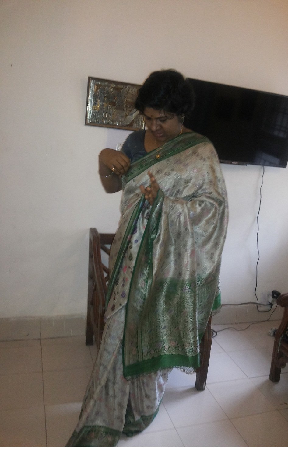 This beauty is full of silver made thread if i melt this saree it may come out many kgs of silves. i dont know how much silver will come out but I never melt it. It is my most treasured saree. It is my Mil’s Mother’s wedding saree so it is treasured saree with a beautiful green pallu